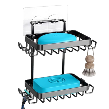 Jabonera de barra de 2 niveles de diseño moderno, acero inoxidable, montada en la pared para ducha, jabonera negra para baños